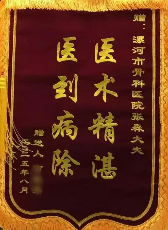 近日,一面繡著“醫(yī)術(shù)精湛,醫(yī)到病除”的錦旗,帶著沉甸甸的感激,送到了漯河醫(yī)專二附院(漯河市骨科醫(yī)院、漯河市立醫(yī)院)康復(fù)科張森醫(yī)生手中。這不僅是患者對(duì)治療效果的肯定,更是對(duì)他所在團(tuán)隊(duì)的專業(yè)能力與人文關(guān)懷的由衷贊譽(yù)。