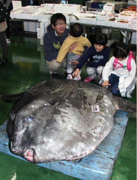 據(jù)日媒報(bào)道,大翻車(chē)魚(yú)當(dāng)初掛在了在香住海面設(shè)置的定制網(wǎng)上,從魚(yú)港被運(yùn)往直銷(xiāo)店時(shí)還是活的。店長(zhǎng)山田直弘興奮地說(shuō)道“看了30多年的鮮魚(yú),還是第一次看到如此大的翻車(chē)魚(yú)”。