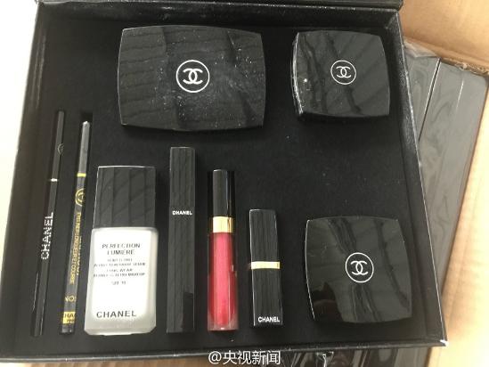 8日,廣西南寧海關查獲了帶有“CHANEL”(香奈兒)標識假化妝品套盒120盒,含粉餅、口紅、粉底液等共1080件。持有人無法提供相關合法證明。近日,化妝品需求量大增,海關提醒,不要為省錢而購買來路不明的商品。(央視記者傅琦恩) ????圖片來源:中央電視臺新聞中心官方微博