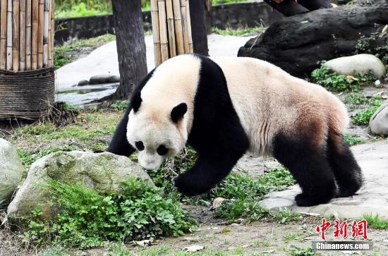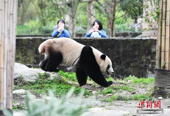 3月24日,海歸大熊貓“寶寶”結(jié)束了回國后為期一個(gè)月的隔離檢疫生活,入住中國大熊貓保護(hù)研究中心都江堰基地盼盼園新家并與公眾見面。 安源 攝