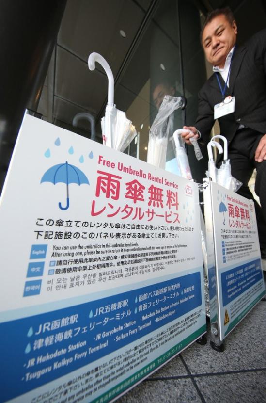 北海道函館市觀(guān)光部表示,由于不能再繼續(xù)浪費(fèi)市民的稅錢(qián),所以停止雨傘免費(fèi)租借服務(wù)。