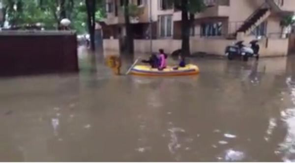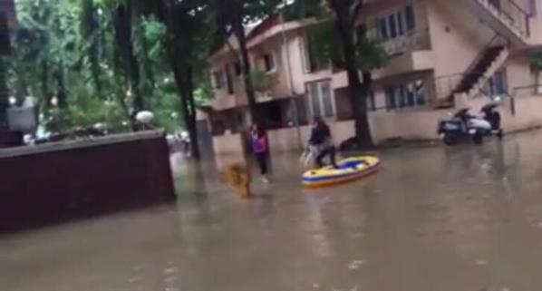 連續(xù)的暴雨把該城市變成了一座夢魘之城。水管爆裂,交通癱瘓,人們不得不靠劃船出行或者待在家里。居民叫苦不迭,紛紛在社交媒體上吐槽。有人曬在路上劃船的視頻,有人曬漲水的街道和房屋,還有人半開玩笑半諷刺地求助。