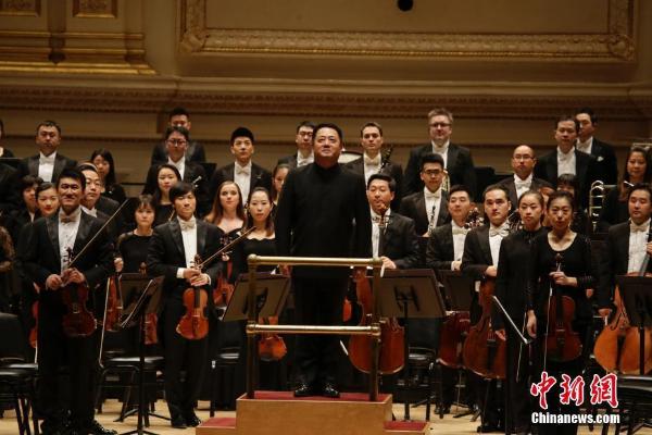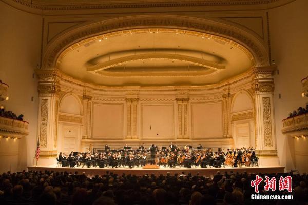 10月30日晚,中國國家大劇院管弦樂團在音樂總監(jiān)呂嘉的帶領下,首登紐約卡內基音樂廳。“范⋅克萊本國際鋼琴大賽”金獎得主張昊辰演奏華人經典鋼琴協(xié)奏曲《黃河》;樂團還演奏了《D大調第二交響曲》,為紐約觀眾呈現一場中西文化交相輝映的音樂盛宴。 中新社記者 廖攀 攝