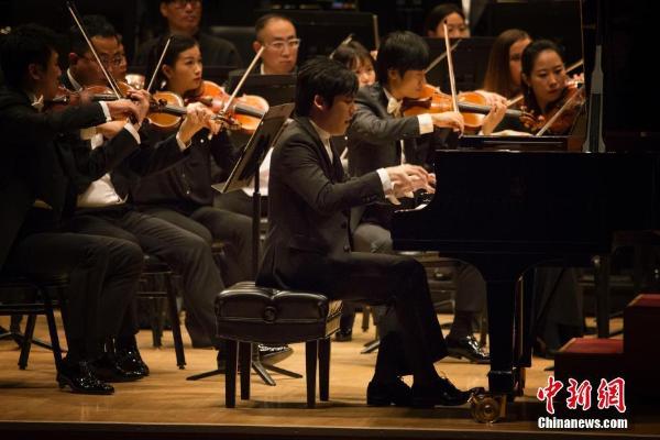 10月30日晚,中國國家大劇院管弦樂團在音樂總監(jiān)呂嘉的帶領下,首登紐約卡內基音樂廳。“范⋅克萊本國際鋼琴大賽”金獎得主張昊辰演奏華人經典鋼琴協(xié)奏曲《黃河》;樂團還演奏了《D大調第二交響曲》,為紐約觀眾呈現一場中西文化交相輝映的音樂盛宴。圖為張昊辰在彈奏鋼琴。 中新社記者 廖攀 攝