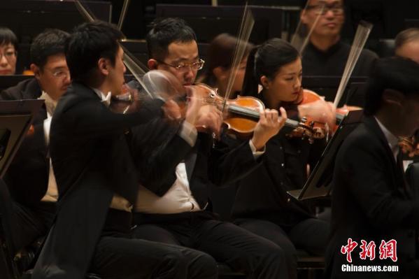 圖為樂團小提琴手在演奏。 中新社記者 廖攀 攝