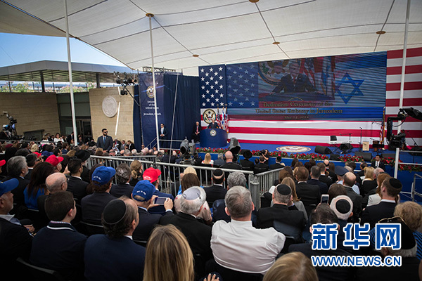 數(shù)百名官員參加了當天的美國新使館開館儀式。美國副國務卿沙利文率領美方代表團出席儀式,其中包括美國總統(tǒng)特朗普的女兒伊萬卡和她的丈夫庫什納,以及美財政部長姆努欽。