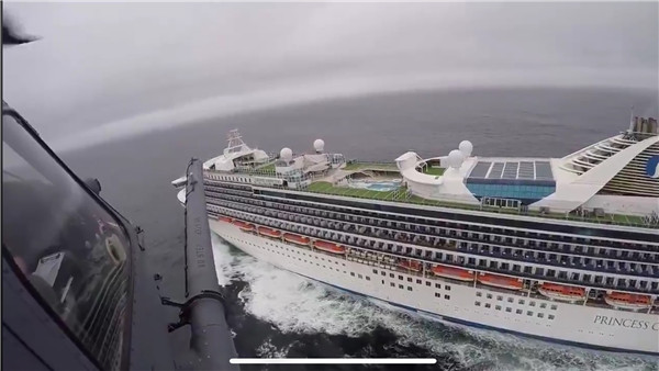 直升飛機飛到郵輪上空投遞檢測套件