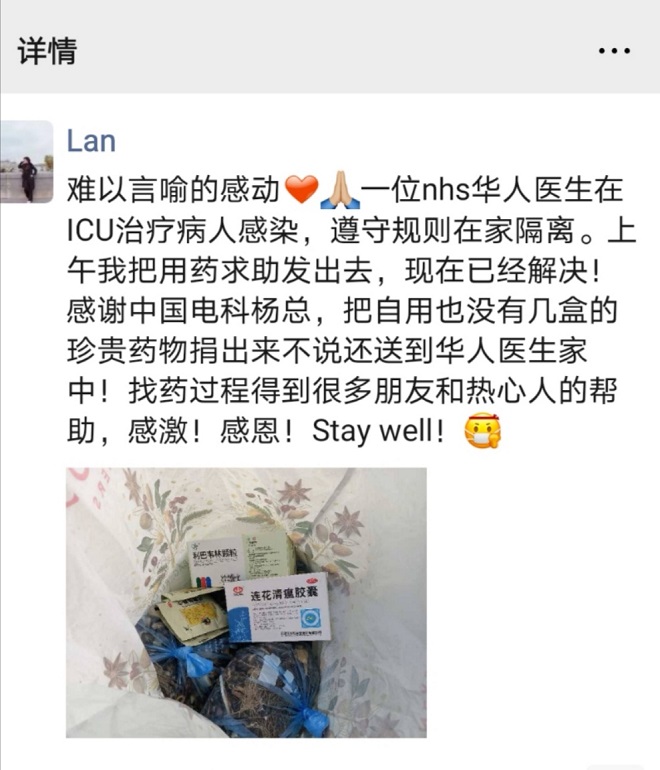 校友會也對英國本地醫(yī)院給予了一些防疫物資的捐助。由于英國醫(yī)院對于防疫物資的要求嚴(yán)格,所以捐贈的物資都是捐到醫(yī)生個人手上,然后由醫(yī)生來判斷他們怎么樣去合理使用。同時她正在溝通幫助英格蘭一些地區(qū)負(fù)責(zé)人與武漢大學(xué)中南醫(yī)院和人民醫(yī)院經(jīng)驗豐富的醫(yī)生對疫情進(jìn)行在線交流。