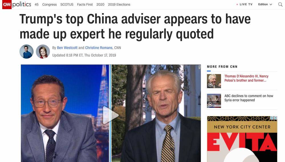 其次,作為反華一線的鷹派,納瓦羅撒謊成性、造謠上癮,早就不是什么新鮮事。2019年,多家美媒披露,納瓦羅在其書作中屢次提到、引用的“專家羅恩·瓦拉”,其實根本就不存在。這名屢屢發(fā)表反華、抹黑中國言論的“羅恩·瓦拉”(Ron Vara),其實就是納瓦羅(Navarro)的姓氏更改字母順序后的結(jié)果。如今,他試圖四處散播污名化中國的政治病毒,其實與當(dāng)年這出無中生“友”鬧劇一樣,只不過是“徒增笑耳”。