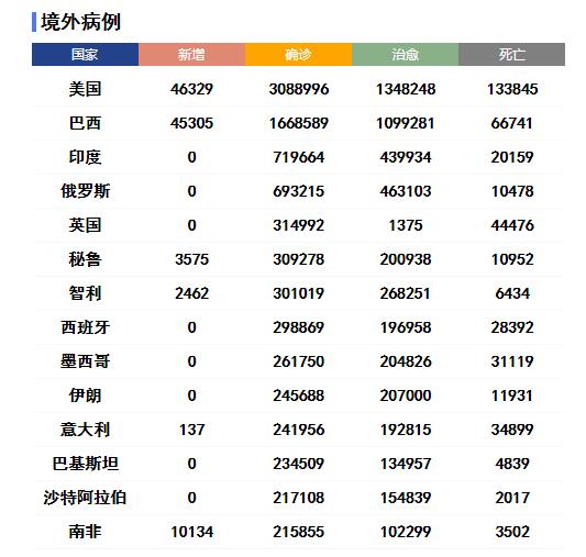 全球范圍內(nèi),新冠確診病例較前一日增加172512例,達(dá)到11500302例;死亡病例較前一日增加3419例,達(dá)到535759例。
