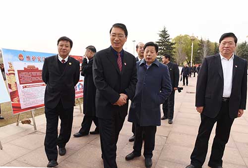 紅楓廣場(chǎng)四周擺放的近百塊展板,全面反映了我市學(xué)習(xí)宣傳實(shí)施憲法的生動(dòng)實(shí)踐和取得的豐碩成果,成為一道靚麗的風(fēng)景線。儀式結(jié)束后,劉尚進(jìn)等參觀了我市憲法學(xué)習(xí)宣傳和貫徹實(shí)施成果展,指出要進(jìn)一步擴(kuò)大憲法宣傳覆蓋面,在全社會(huì)營(yíng)造尊崇憲法、學(xué)習(xí)憲法、遵守憲法、維護(hù)憲法、運(yùn)用憲法的濃厚氛圍。