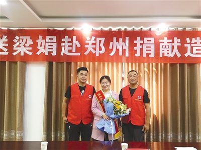 當天下午,梁娟在市紅十字會工作人員的陪伴下,前往鄭州捐獻造血干細胞,用實際行動挽救一名素不相識的14歲白血病患者。