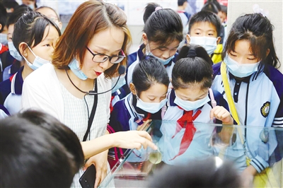 9月17日上午,受降路小學(xué)分校組織優(yōu)秀少先隊(duì)員,來(lái)到漯河中州抗戰(zhàn)紀(jì)念館,緬懷革命先烈。圖為同學(xué)們認(rèn)真聆聽(tīng)講解員的講解。曹會(huì)軍 攝