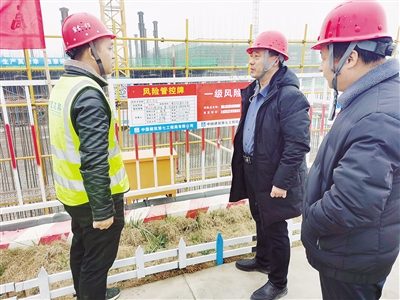 劉智民(中)在雙匯總部建設(shè)工地檢查各項安全措施落實情況。