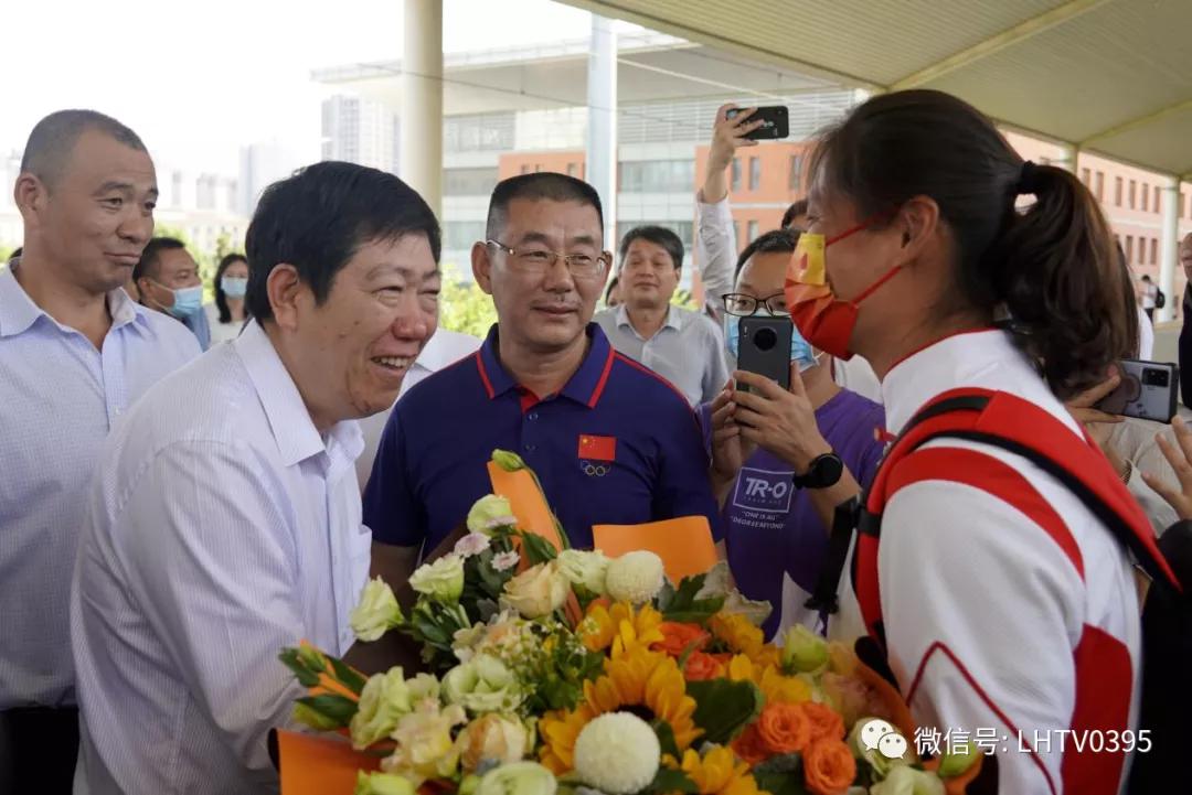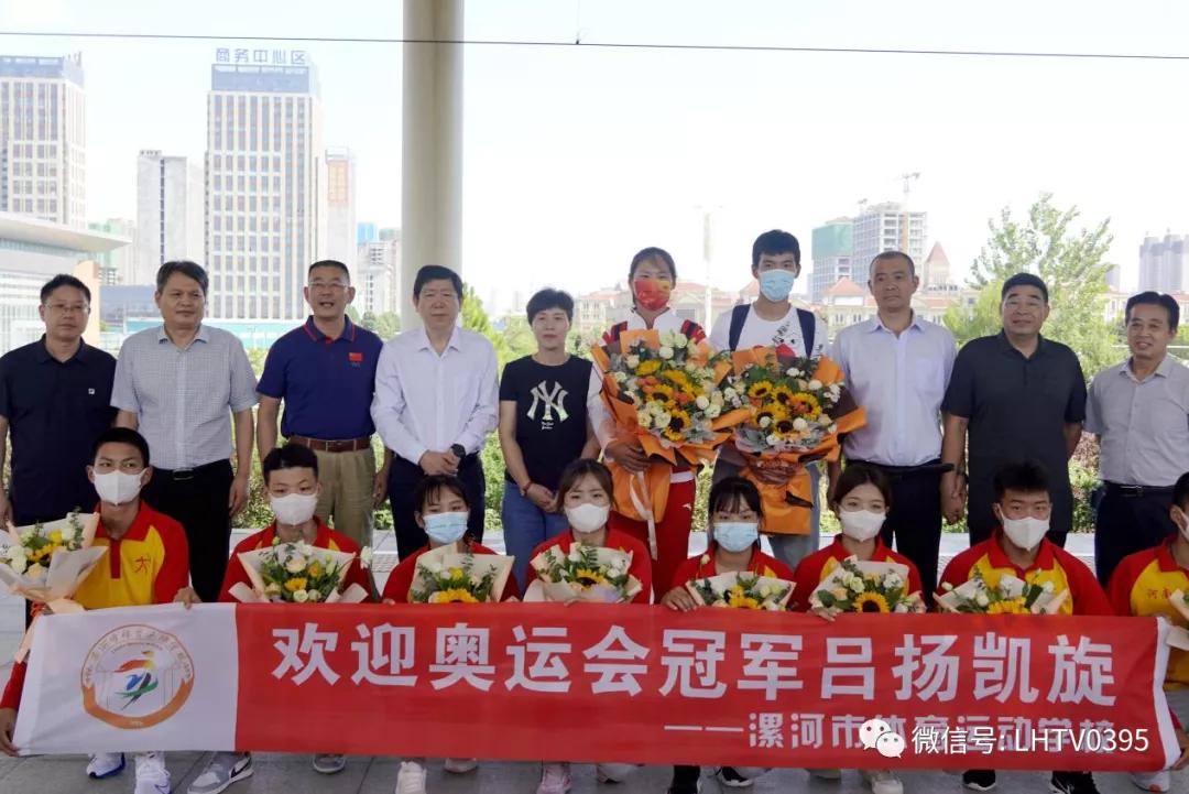 漯河市副市長栗社臣、呂揚(yáng)父母、漯河市文化廣電和旅游局(體育局)黨組書記晁偉、局長張合良和市體校領(lǐng)導(dǎo)班子、師生代表,在漯河高鐵西站迎接奧運(yùn)冠軍凱旋。