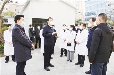 12月13日下午,市委書記劉尚進(jìn)等在市中心醫(yī)院察看發(fā)熱門診運(yùn)行管理情況。
