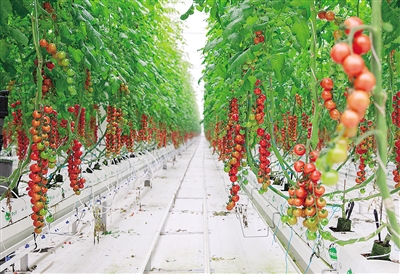 “我們園區(qū)種的番茄清脆甘甜、水分充足,主要銷往北京、上海等地。2022年11月中旬開始成熟,預計能陸續(xù)采摘到今年7月。”據(jù)園區(qū)相關負責人介紹,這個智慧農(nóng)業(yè)設施集群溫室大棚預計可實現(xiàn)優(yōu)質(zhì)番茄年產(chǎn)量3700噸,年產(chǎn)值預計4500萬元。