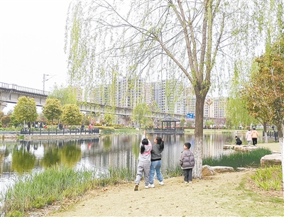 4月5日,在龍湖公園,幾個孩子在折柳條,與周圍美景格格不入。