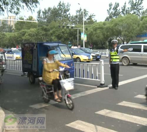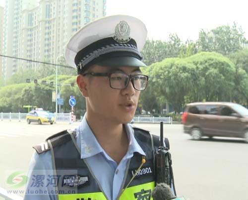 漯河市交警支隊(duì)交通秩序管理示范大隊(duì)交警李林鵬:當(dāng)時(shí)雨衣帶了放在車上,當(dāng)我們要去穿雨衣的時(shí)候,路口又要堵,所以我又回到路口去指揮交通,張龍江在輔道指揮非機(jī)動(dòng)車。