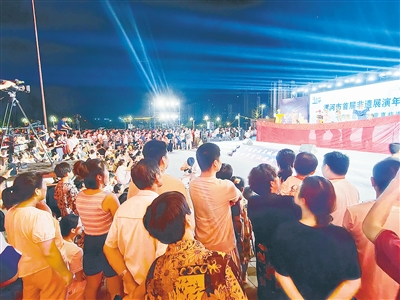 7月12日晚,西城區(qū)市民之家南門(mén)廣場(chǎng)燈火璀璨、人潮涌動(dòng)。漯河市首屆非遺展演年活動(dòng)七月第二場(chǎng)展演在此拉開(kāi)帷幕。演出以“童真非遺”為主題,將我市兩個(gè)極具代表性的非遺項(xiàng)目——嗩吶咔戲與木偶戲搬上舞臺(tái),以童趣化演繹展現(xiàn)傳統(tǒng)藝術(shù)的魅力。